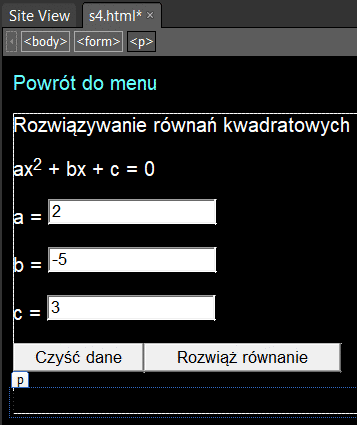 Zapisz stronę w katalogu witryny i sprawdź jej działanie w przeglądarce.