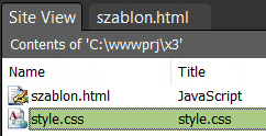 Teraz przygotujemy arkusz stylów. Załaduj do edytora plik style.css (wróć na zakładkę Site View i kliknij dwukrotnie lewym przyciskiem myszki w plik arkusza). Przekopiuj do arkusza poniższy tekst i zapisz arkusz w katalogu witryny: