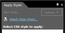 W panelu Apply Styles kliknij w opcję Attach Style Sheet...: