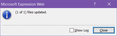 Arkusz stylów zostaje połączony ze stroną szablon.html. Expression Web wyświetla okienko potwierdzające uaktualnienie pliku strony: