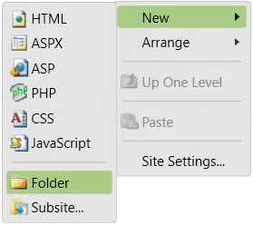 Teraz utworzymy dwa katalogi: na przyszłe skrypty JaveScript oraz na obrazki. Kliknij prawym przyciskiem myszki w puste miejsce katalogu witryny i z menu kontekstowego wybierz opcję:
